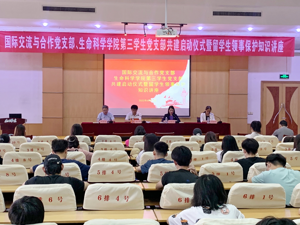 为切实加强党对中外合作办学的领导,促进党建工作与业务工作相互融合、相互促进,实现党支部在结对共建中达到优势互补、共同提高,6月13日,学校在四楼报告厅举行国际交流与合作党支部、生命科学学院第三学生党支部共建启动仪式暨留学生领事保护知识讲座,副校长李永平出席启动仪式并致辞。