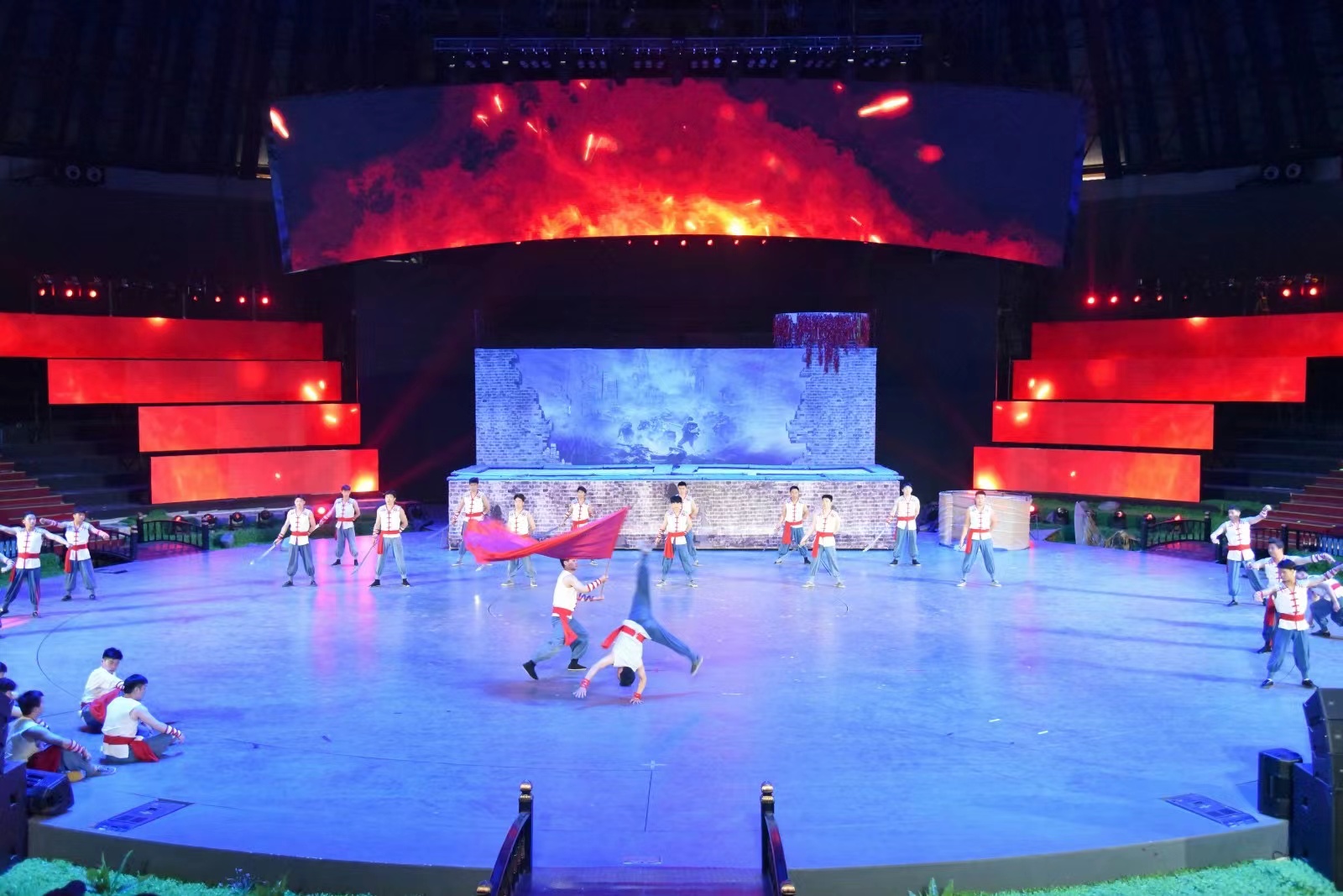 杂技情景剧《大刀传奇》由德州市杂技团、宁津杂技团、宁津杂技艺术学校和德百集团联手打造,以宁津本土作家郭澄清的长篇小说《大刀记》为主题,选用德州市杂技团和宁津县杂技团共达150多名演员,邀请国内知名导演历经7个多月创排。采用杂技、舞美、实景等舞台艺术,把宁津人民顽强抗击日本侵略者英勇杀敌的“大刀精神”,以大型情景剧形式呈现在舞台上,讲述红色故事、传承红色文化。