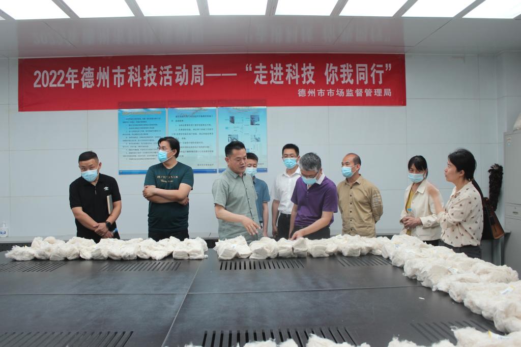 在德州市纤检所,学院一行在所长张乐柱陪同下,先后参观了纤检所党建文化展室、中国棉花公证检验(德州)实验室和国家棉花标准样品研制基地、棉花文化展馆项目等场所,详细了解了德州市纤检所“五星党支部”建设、党建引领事业发展等方面取得的丰硕成果。双方围绕业务融合项目研发、标准及质量提升、棉花文化挖掘、学生实习就业等问题进行了深入交流,并进一步深化了“协同育人、资源共享、互补共赢”的共识。双方一致表示,将从多渠道开展有益探索,寻找更多契合点,通过党建共建、人才培养支持、质量培训讲堂、实验室设备资源共享、实习就业等全方位、多层次的密切合作,不断优化资源高效利用,增强纺织行业高质量发展动力。