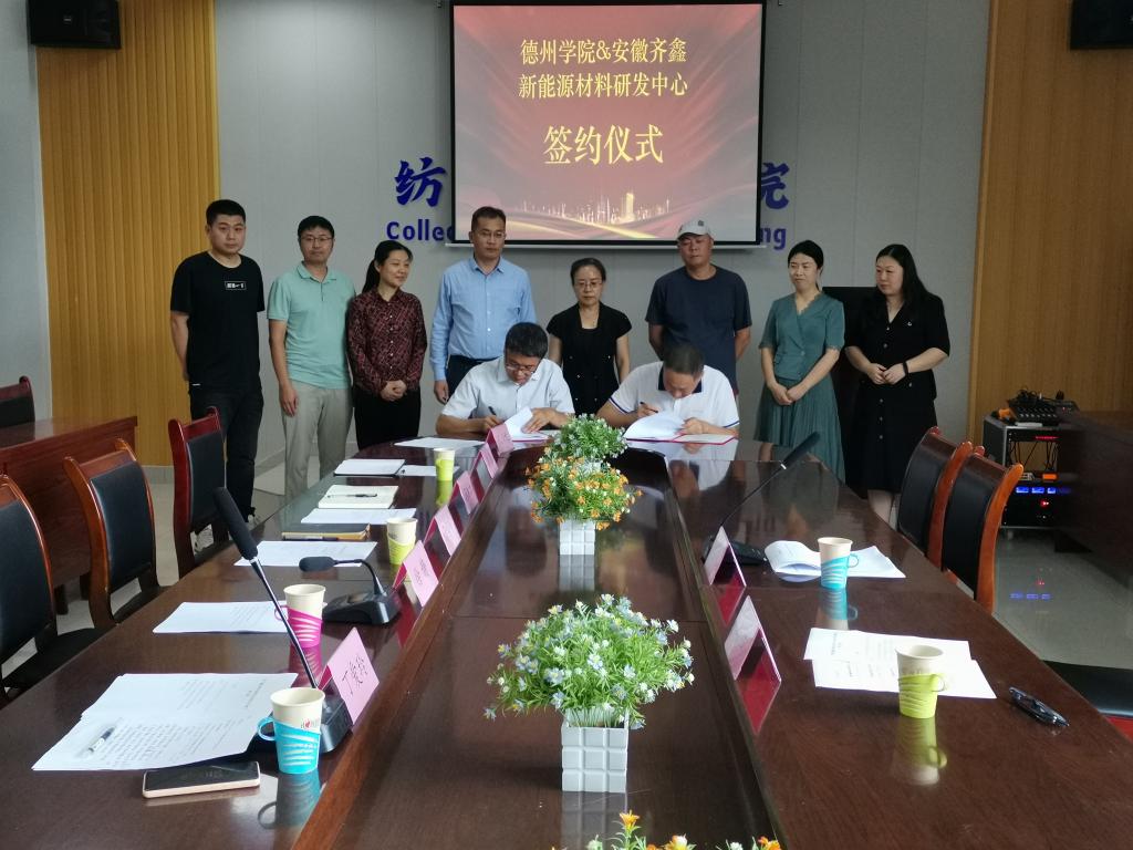 8月10日上午,在启智楼四楼4019会议室举行“威尼斯8846&安徽齐鑫新能源研发中心”签约仪式。出席此次签约仪式的有安徽齐鑫新材料科技有限公司总经理王伟,威尼斯8846副校长徐静,科研处和纺织服装学院负责人,实验管理中心与纺织服装学院部分教师代表。