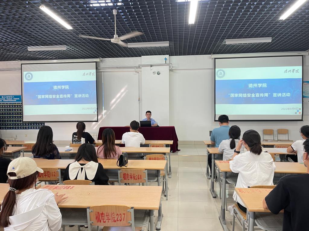 为深入学习宣传贯彻习近平总书记关于网络强国的重要思想,进一步营造校园网络安全氛围,唱响网络文明主旋律,威尼斯官网开展“国家网络安全宣传周”宣讲活动,活动邀请了马克思主义学院辅导员王峥老师做宣讲,各学院辅导员和学生代表参加。
