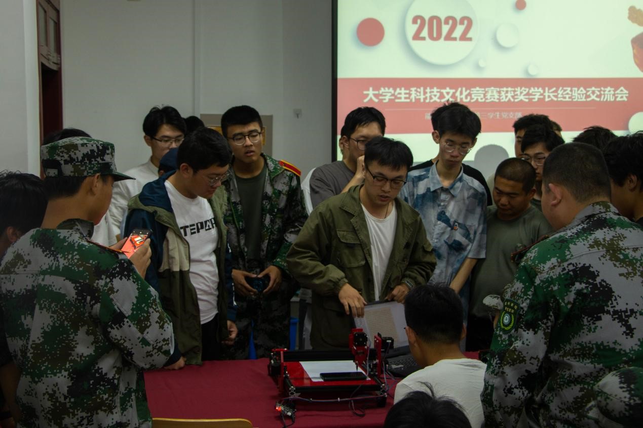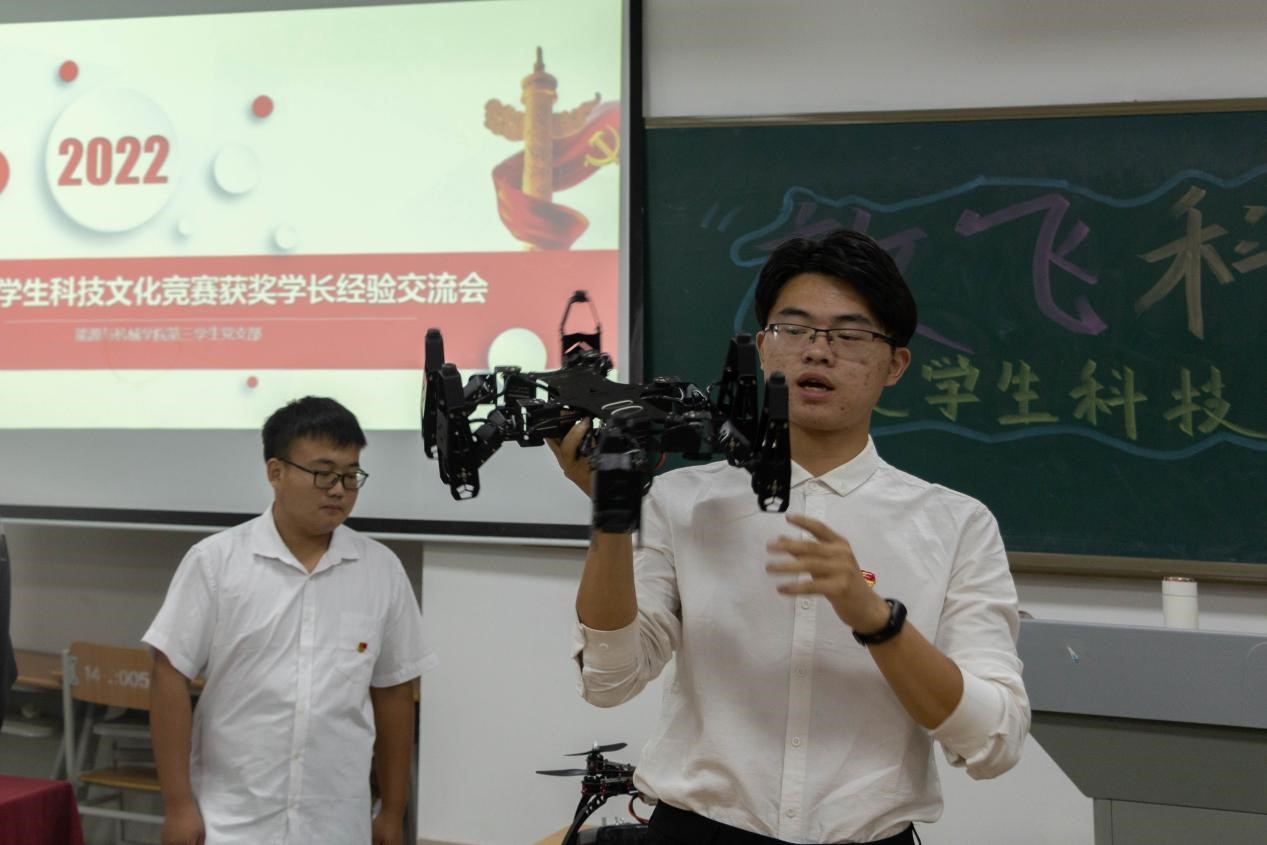 此次经验交流会邀请了在大学生科技文化竞赛上获奖的优秀项目负责人同学,近距离为同学们分享自己的竞赛成长经历,并答疑解惑,让同学们深入地认识科创竞赛以及相关内容,学生党员在现场为新生展示了多种科技创新作品并进行了讲解和演示,现场气氛十分活跃,同学们表现出了对科技创新的浓厚兴趣。
