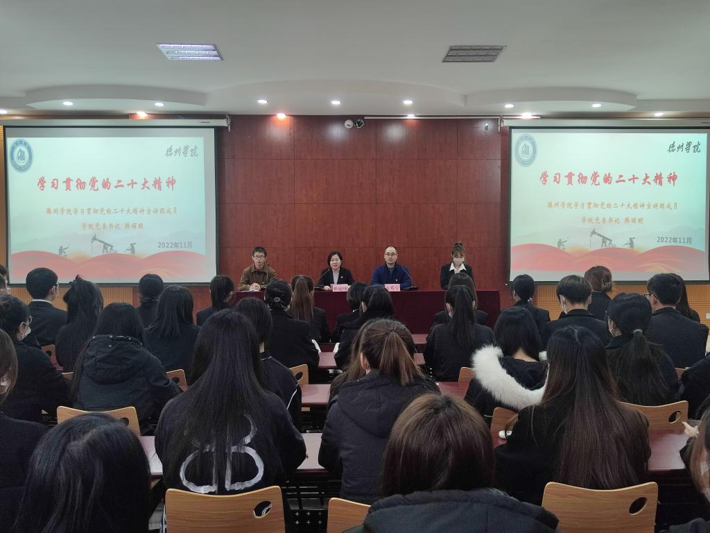 宣讲围绕党的二十大的主题、主要成果、重大意义,以及中国式现代化的中国特色和本质要求,全面建设社会主义现代化国家的目标任务,坚持党的全面领导和全面从严治党的重大部署等方面对党的二十大精神进行了深入宣讲,并结合学院实际,就抓好贯彻落实提出了新要求。
